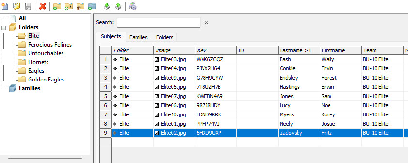 Individual images should be matched to the appropriate record, and subjects should be placed into folders by team to match each individual with the correct group image.